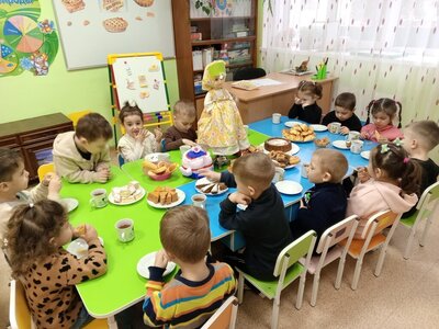 Дети рассказывали друг другу о том, какие праздничные традиции существуют у них в семье, что пекут мамы к празднику, как дети помогают своим мамам на кухне. Пироги различаются не только начинкой, но и внешним видом. А в завершении праздника для ребят было устроено праздничное чаепитие с вкусными пирогами. Ребята получили море положительных эмоций!