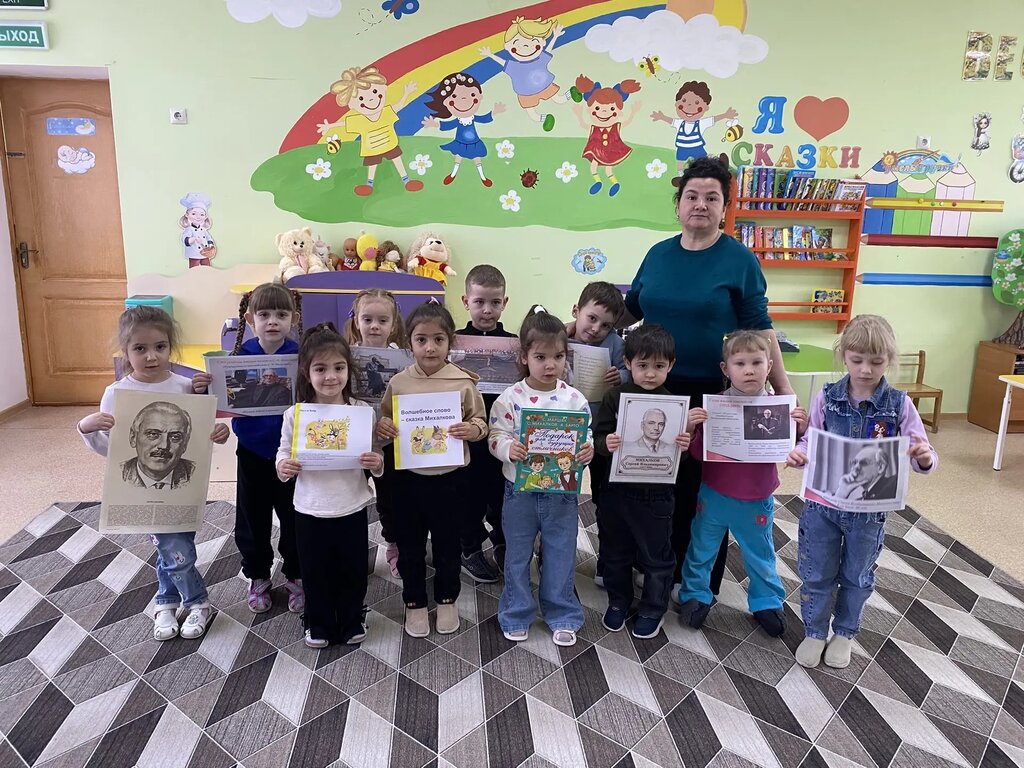 В средней группе «Непоседы» прошёл тематический день, посвященный дню рождения С.В. Михалкова. Наши воспитанники познакомились с биографией поэта, вспомнили известные произведения автора. Ребята с удовольствием читали свои любимые стихи: «А что у Вас?», «Щенок», «Про мимозу», «Моя улица», "Фома". В группе была оформлена выставка детских книг с портретом писателя.