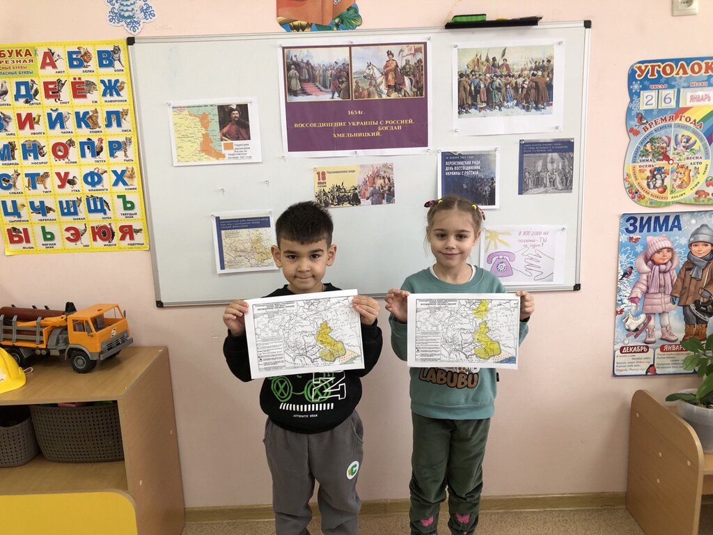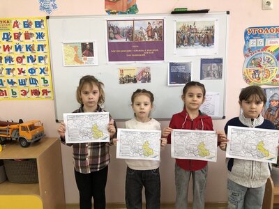 18 января в подготовительной к школе группе «Почемучки» отметили день Воссоединения Руси. Ребята узнали всю важность этого события для нашей страны в наше время. Дети с интересом слушали рассказ воспитателя про гетьмана Богдана Хмельницкого, Переяславскую Раду, рассматривали, а затем раскрасили карту освободительной войны 1648-1654 года.