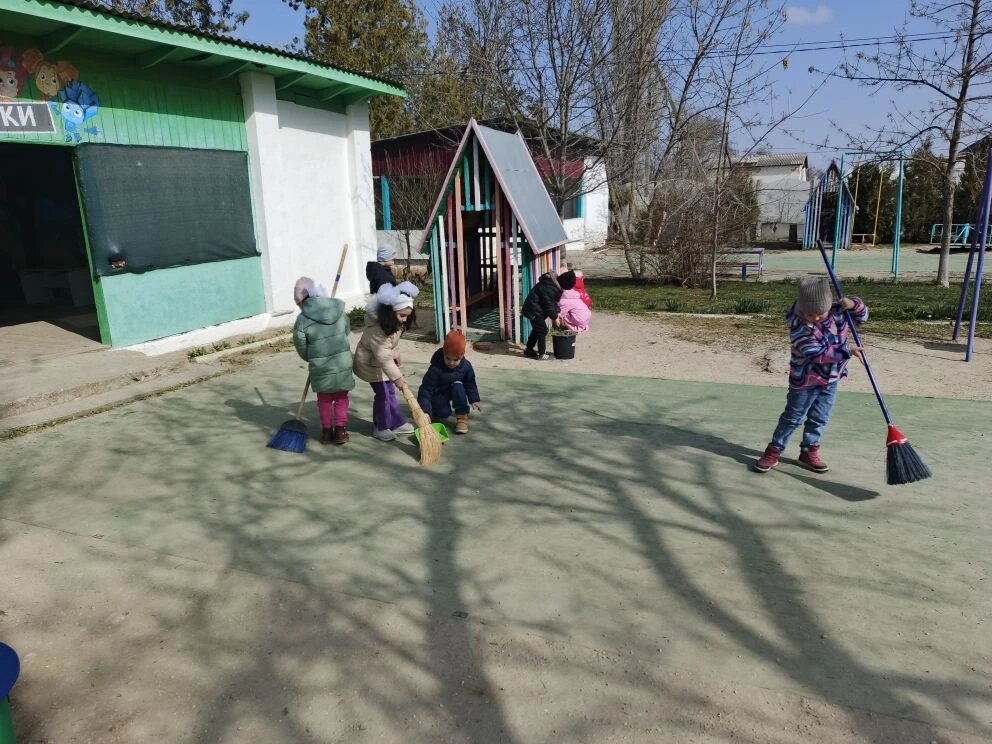 Воспитанники старших групп «Почемучки», «Фиксики» и «Непоседы» приняли участие в субботнике , приуроченному к Всероссийской акции «Из Крыма и Севастополя с любовью» ко дню воссоединения Республики Крым с Россией. Ребята убирали сухие веточки, подметали дорожки, собирали мусор и сухие листья на территории детского сада.